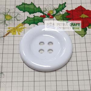 กระดุม 4 รู ขนาดใหญ่ เส้นผ่าศูนย์กลาง 5 เซนติเมตร ทำจากพลาสติกเนื้อแข็งอย่างดี ผิวแววาว