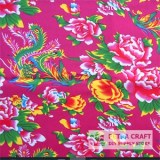 ผ้าคอตตอนทอทแยง ลายนกฟินิกซ์ในดงดอกโบตั๋น ลวดลายดอกโบตั้๋นสีชมพูสด บานเย็น แซมด้วยสีเหลือง ชาว และใบไม้สีเขียว