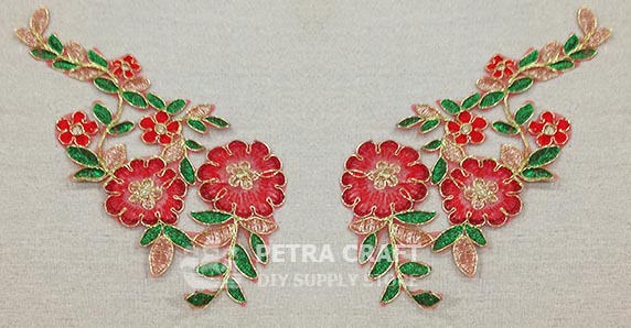 ตัวปักลายดอกไม้กึ่งโปร่ง ขนาดใหญ่ 12x19 ซม. สำหรับติดเสื้อผ้า