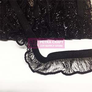 ด้านจีบย่นเป็นอีลาสติกทำให้ยืดได้อีก เนื้อเทปโปร่งสอดดิ้นแวววาว