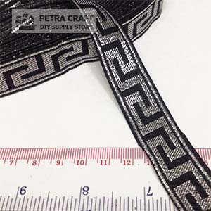 เทปปักลายจีน 2cm -D04 สีเงินพื้นดำ
